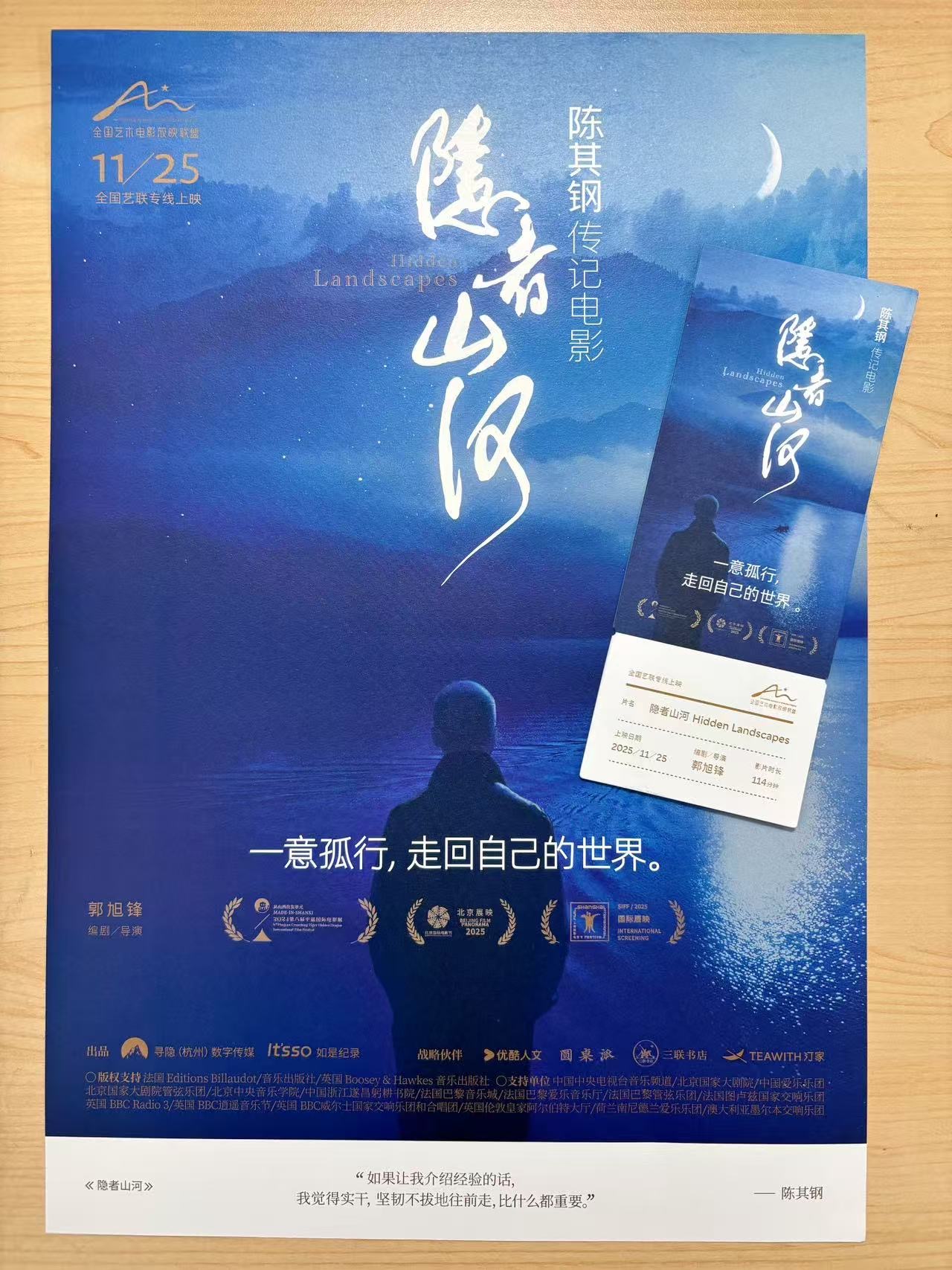 这是一场为喜欢《隐者山河》的好朋友组的“拼团”~~~~ 《隐者山河》是一部深入作曲家陈其钢精神世界的艺术传记电影。影片历时七年跨国拍摄,以沉浸式的视听语言,记录下数十位世界级音乐家演绎其作品的珍贵现场,堪称一场顶级的视听盛宴。让LUXE杜比全景声巨幕厅给喜欢的朋友们一个更为沉浸的观影氛围~~~~ 🎉本次我们30人即可成团杜比全景声LUXE巨幕厅 🎉福利加码:人手海报一张 【活动介绍】 ⏰ 时间:2025年12月18日(周四)19:20 📍地点:临沂万象影城LUXE巨幕厅 🎁早鸟票每位购票成员可获得周边:人手一张海报+一张票根 【购票须知】 1.大家点击“我要报名”即可参与报名,座位都是提前预留中间座位,有其他要求可以尽情备注; 2.欢迎当前一般提前30分钟在影院大堂有签到处,直接出示活动报名二维码核销领票以及周边; 3.报名及默认以下行为:观影时不拍照、不录像、不大声说话也不小声逼逼,也不会踢前方人的椅子。 让我们一起看好电影! 【影片介绍】 导演: 郭旭锋 编剧: 郭旭锋 主演: 陈其钢 / 戈蒂埃·卡普松 / 马克西姆·文格洛夫 / 汉努·林图 / 洛朗·贝尔 / 更多... 类型: 纪录片 / 音乐 制片国家/地区: 中国大陆 语言: 汉语普通话 上映日期: 2025-11-25(中国大陆) / 2024-09-27(平遥国际电影展) 片长: 115分钟 隐者山河》是一部深入作曲家陈其钢精神世界的艺术传记电影。影片历时七年跨国拍摄,以沉浸式的视听语言,记录下数十位世界级音乐家演绎其作品的珍贵现场,堪称一场顶级的视听盛宴。 然而,影片远不止于音乐。它更以散文诗般的笔触,刻画了陈其钢从国际舞台隐退,选择“忙世人之所闲,闲世人之所忙”的独行之路。影片深刻探讨了他在中西方文化碰撞中,如何坚守自我,最终“一意孤行,走回自己的世界”的精神突围。 这既是一位艺术家的心灵史,也为所有在喧嚣时代中寻求自我的人,提供了一份深刻的映照与笃定的力量。11月25日,于全国艺联专线,诚邀您共赴这场涤荡心灵的光影之约。 @电影小憩时光 #电影小憩时光